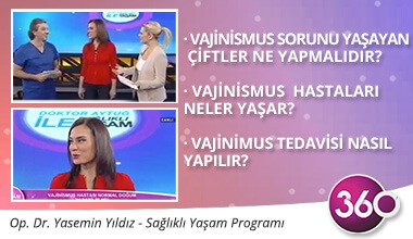 360 TV Sağlıklı Yaşam programına konuk olan Op. Dr. Yasemin Yıldız, “vajinismus nedir?”, “vajinismus tedavisinde neler yapılır?” ve vajinismus tedavisi ile ilgili soruları yanıtlıyor.